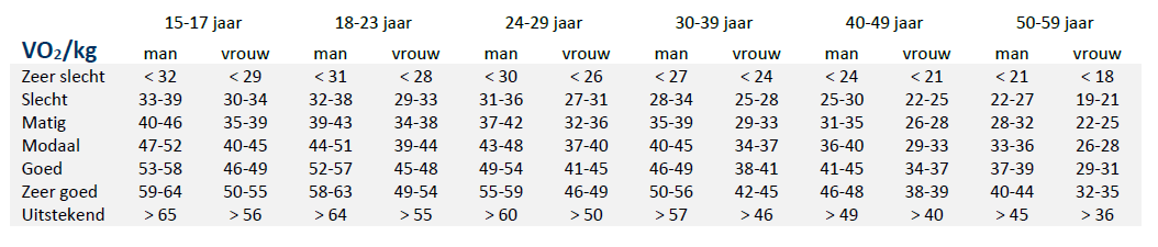 De VO2 is de hoeveelheid zuurstof die het lichaam opneemt via de longen, naar het bloed en vervolgens naar de spieren. De VO2 aan het einde van de test is de VO2max. Hoe beter de conditie hoe hoger de VO2max en het fietsvermogen.